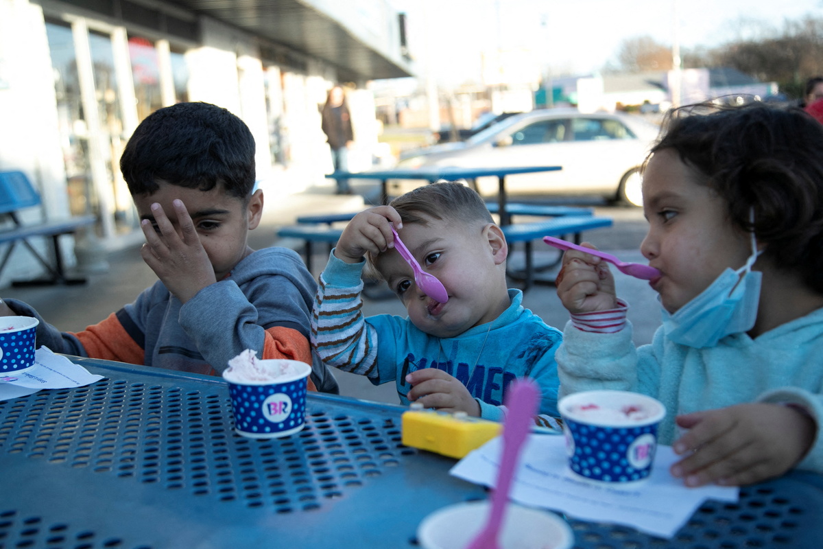 Khadija Habibi, 5, pushes her brother Sharifullah Habibi, 8, at Three Springs Park in Bowling Green, Kentucky, U.S., November 7 2021. Bowling Green has welcomed waves of refugees over four decades, beginning with the Cambodians in the 1980s and then Bosnians in the 1990s, plus Iraqis, Burmese, Rwandese and Congolese and others, who have helped make the city of 72,000 a diverse and economically thriving place. REUTERS/Amira Karaoud Siblings, Sanaullah Khan Zadran, 6, Mirwais Khan Zadran, 2, and Zahra Zadran , 4, eat ice cream at Baskin Robbins in Bowling Green, Kentucky, U.S., November 27 2021. The Zadran family, Afghan refugees fleeing the Taliban, came to Bowling Green after a spell at a New Mexico military base. They secured a house and the children have been sent to school, with the help of local resettlement agency, the International Center. REUTERS/Amira Karaoud Siblings Sanaullah Khan Zadran, 6, dressed up as Superman, Zahra Zardan, 4, and his brother Samiullah Khan Zadran, 13, play on their tablets in Bowling Green, Kentucky, U.S., November 21 2021. The Zadran family, Afghan refugees fleeing the Taliban, came to Bowling Green after a spell at a New Mexico military base. They secured a house and the children have been sent to school, with the help of local resettlement agency, the International Center. REUTERS/Amira Karaoud Congolese refugees and Americans gather for Sunday service at Forest Park Baptist Church in Bowling Green, Kentucky, U.S., November 28 2021. Worship services and Bible study are translated into Swahili and sometimes held in that language. "We love their gospel singing," said church leader Mike Givens (not pictured). REUTERS/Amira Karaoud Shafiqullah Habibi, 34, gets his children dressed before a volunteer comes to take them to Three Springs Park in Bowling Green, Kentucky, U.S., November 7 2021. Bowling Green has welcomed waves of refugees over four decades, beginning with the Cambodians in the 1980s and then Bosnians in the 1990s, plus Iraqis, Burmese, Rwandese and Congolese and others, who have helped make the city of 72,000 a diverse and economically thriving place. REUTERS/Amira Karaoud SEARCH "KARAOUD REFUGEE HAVEN" FOR THIS STORY. SEARCH "WIDER IMAGE" FOR ALL STORIESShafiqullah Habibi, 34, pushes his children, Sharifullah Habibi, 8 and Roya Habibi, 6, on the swings at the Three Springs Park in Bowling Green, Kentucky, U.S., November 7 2021. Bowling Green has welcomed waves of refugees over four decades, beginning with the Cambodians in the 1980s and then Bosnians in the 1990s, plus Iraqis, Burmese, Rwandese and Congolese and others, who have helped make the city of 72,000 a diverse and economically thriving place. REUTERS/Amira Karaoud A Congolese refugee reads a bible verse in Swahili during Sunday Service at Forest Park Baptist Church in Bowling Green, Kentucky, U.S., November 21 2021. Worship services and Bible study are translated into Swahili and sometimes held in that language. "We love their gospel singing," said church leader Mike Givens (not pictured). REUTERS/Amira Karaoud Mohamed Azizi, 24, prays the evening prayer with his aunt Wahida Habibi, 37,in Bowling Green, Kentucky, U.S., November 6 2021. Bowling Green has welcomed waves of refugees over four decades, beginning with the Cambodians in the 1980s and then Bosnians in the 1990s, plus Iraqis, Burmese, Rwandese and Congolese and others, who have helped make the city of 72,000 a diverse and economically thriving place. REUTERS/Amira Karaoud Zahra Zadran, 4, runs to change her shoes at her family's home in Bowling Green, Kentucky, U.S., November 6 2021. The Zadran family, Afghan refugees fleeing the Taliban, came to Bowling Green after a spell at a New Mexico military base. They secured a house and the children have been sent to school, with the help of local resettlement agency, the International Center. REUTERS/Amira Karaoud Zinat Zadran, 12, works on her homework at home in Bowling Green, Kentucky, U.S., November 27 2021. The Zadran family, Afghan refugees fleeing the Taliban, came to Bowling Green after a spell at a New Mexico military base. They secured a house and the children have been sent to school, with the help of local resettlement agency, the International Center. REUTERS/Amira Karaoud FILE PHOTO: Wazir Khan Zadran, 41, and his wife Noorina Zadran, 36, eat ice cream with their children at Baskin Robbins in Bowling Green, Kentucky, U.S., November 27 2021. Wazir, an Afghan refugee, was a tribal leader who fought against the Haqqani network, a powerful faction within the Taliban. He said the Americans saved him and his family by picking them up in a Chinook helicopter in August and taking them to the Kabul airport. After a spell at a New Mexico military base, they were sent to Bowling Green. "We are so happy in Bowling Green," he said. "Also, the local community is helping us and introducing the culture to us," REUTERS/Amira Karaoud SEARCH "KARAOUD REFUGEE HAVEN" FOR THIS STORY. SEARCH "WIDER IMAGE" FOR ALL STORIESFILE PHOTO: Noorina Zadran, 36, shows off her handwriting practice during English class at the International Center in Bowling Green, Kentucky, U.S., November 21 2021. The Zadran family, Afghan refugees fleeing the Taliban, came to Bowling Green after a spell at a New Mexico military base. They secured a house and the children have been sent to school, with the help of local resettlement agency, the International Center. REUTERS/Amira Karaoud SEARCH "KARAOUD REFUGEE HAVEN" FOR THIS STORY. SEARCH "WIDER IMAGE" FOR ALL STORIES