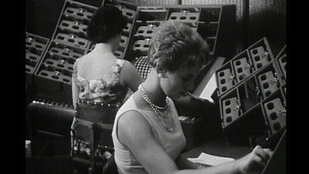 An ABC Archives behind-the-scenes film gives a fascinating insight into how the program was produced, showing electoral authorities using mechanical counters to add up votes and results being hand painted onto tiles displayed on the tally board as the government of Robert Menzies was re-elected.