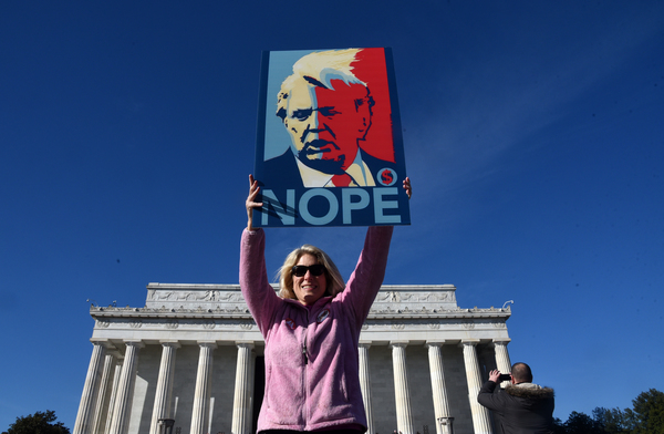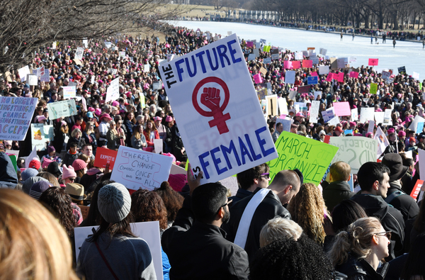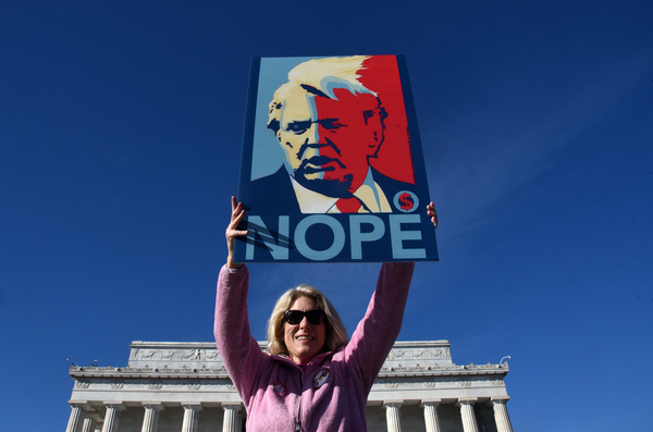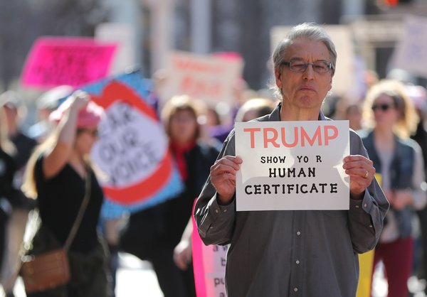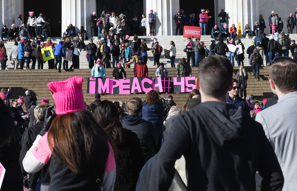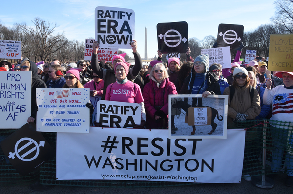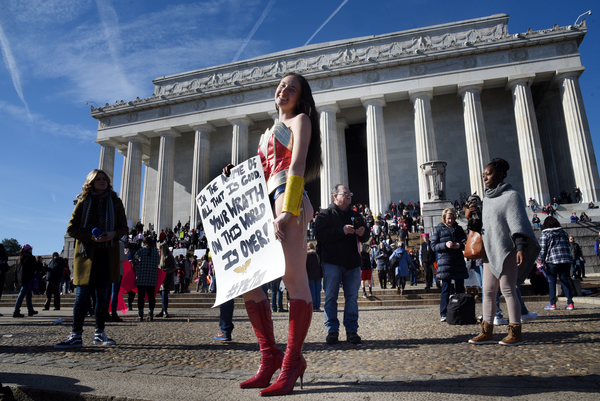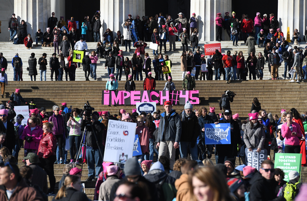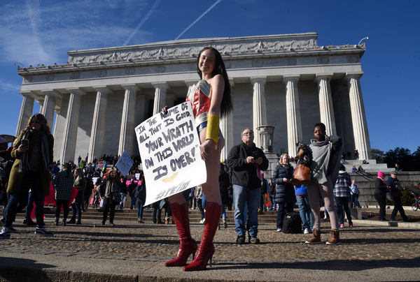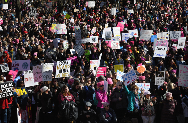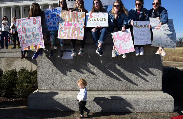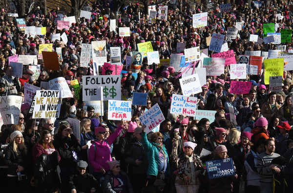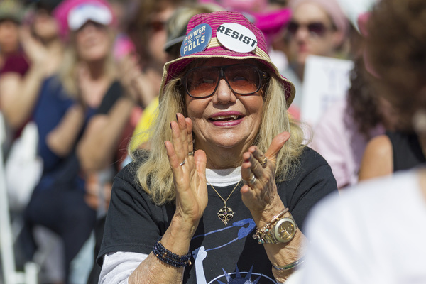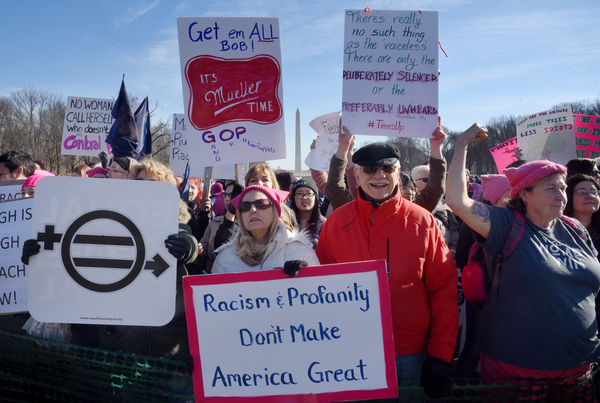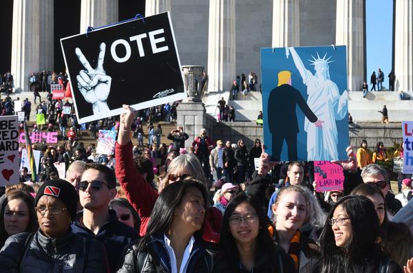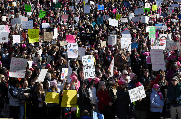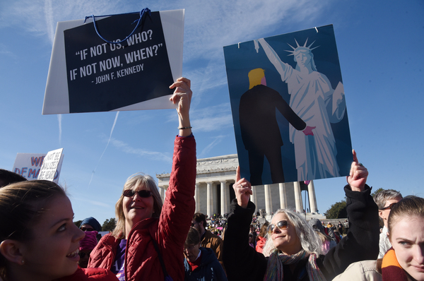 Dusting off pink knit hats and brandishing colorful signs, marchers gathered Saturday in the shadow of the capital's Lincoln Memorial, in midtown Manhattan and in scores of other cities across the country _ not aiming to re-create the record-shattering crowds of the Women's March a year ago this weekend, but vowing to make a mark at the ballot box.