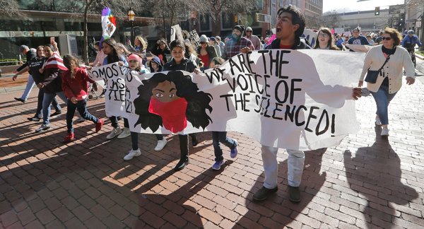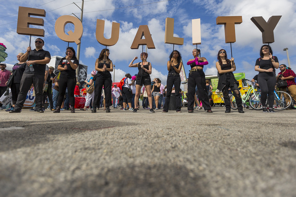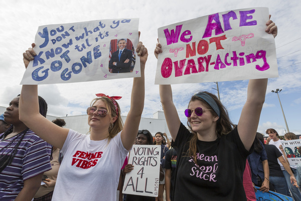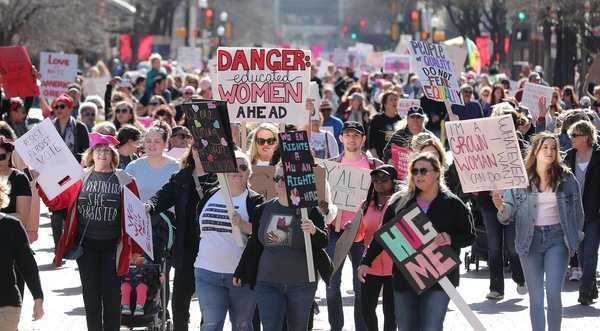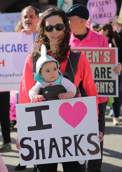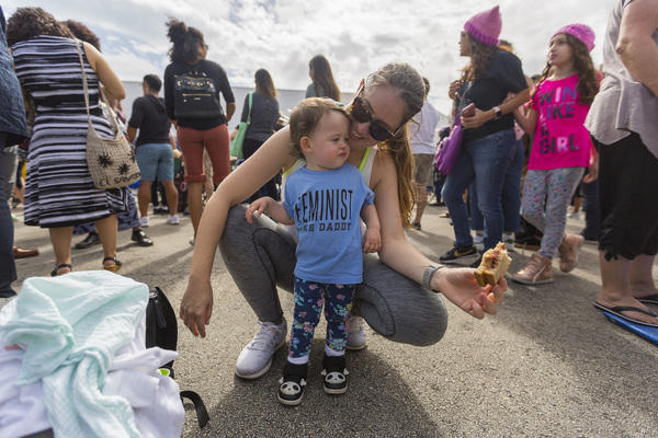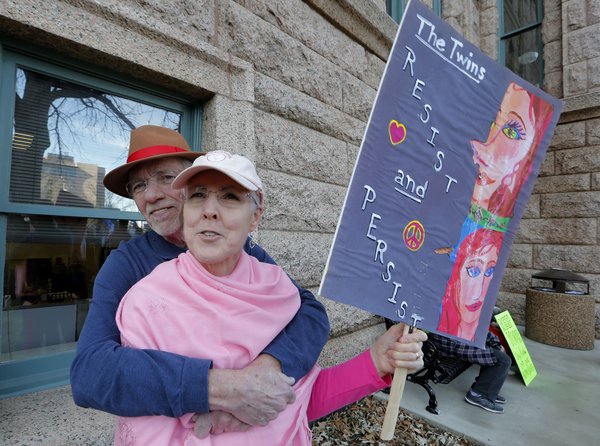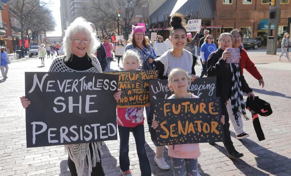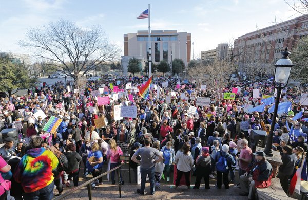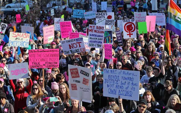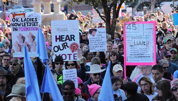 Attorney Marita Covarrubias, 54, brought her 17-year-old daughter and friend. "Living here in Texas, you don't see a lot of social activism," said Covarrubias, who grew up in Santa Monica and graduated from the University of California, Berkeley. "Unfortunately, things have not improved over the past year. Women really need to get together to take action on these issues."
