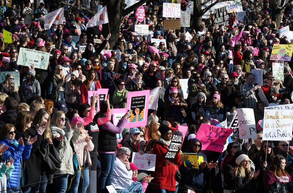 Seeking to send a message of female empowerment and solidarity in the face of a divisive presidency that began a year ago Saturday, activists staged protest marches and voter-registration drives, with the #MeToo movement of recent months serving as an inflection point.