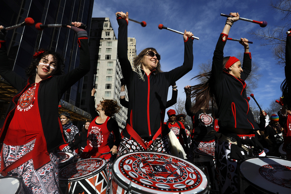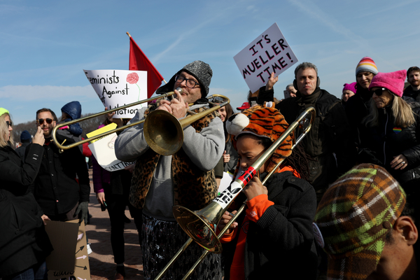 In Washington, groups gathered under a crystal-clear sky, with the National Mall as a backdrop. Brazilian drummers warmed up the crowd to cheers.