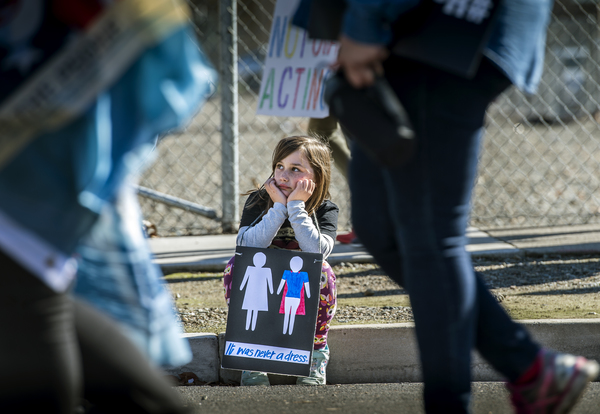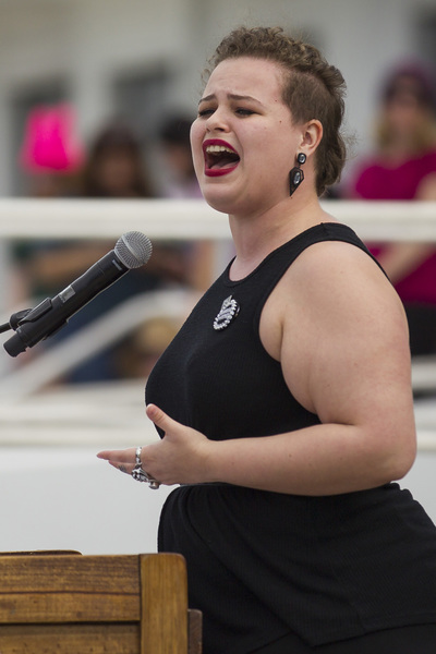 Scarlett Cunningham-Young, 11, stood next to eight of her friends and their families, holding a sign with a quote by Malala Yousafzi. It was her second year attending the women's march and she said she felt inspired being around the thousands of other marchers.