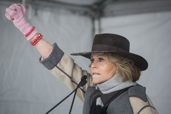 The march was smaller but equally exuberant at the scene of the Sundance Film Festival in Park City, Utah, where hundreds of women turned out in 23-degree weather _ and snow _ for a lineup that was to include Jane Fonda, Common, Gloria Allred and Lena Waithe.