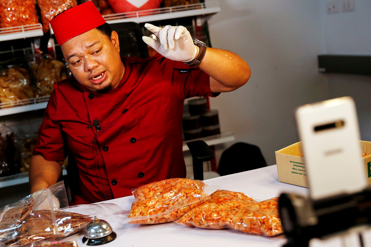 He's backed by a team who help respond to orders, answer questions on Facebook Messenger, monitor payments to his bank account and shout out tag lines off camera for comedic effect.
