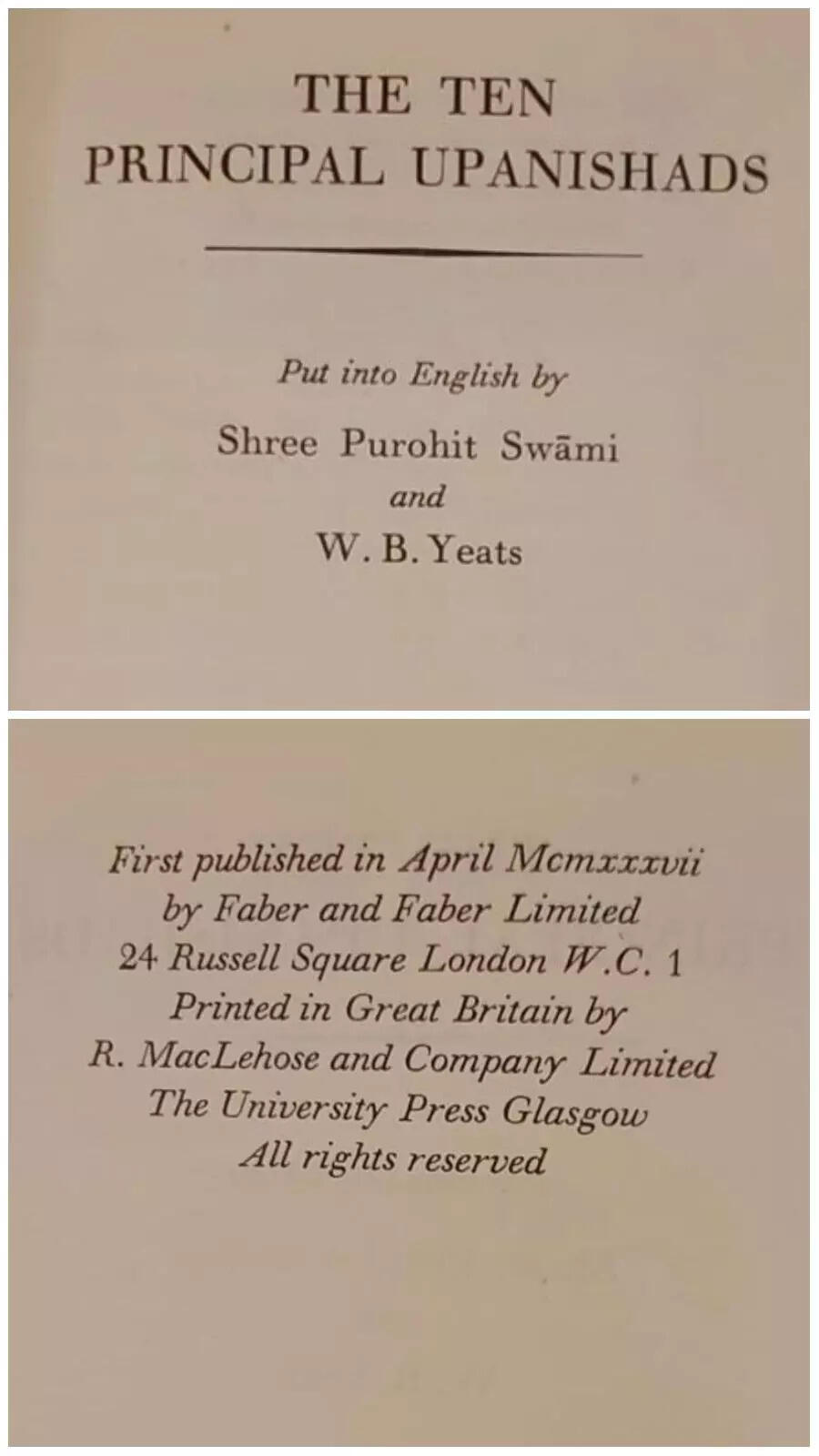 Meanwhile, Yeats' admiration for India and his influence by Indian spirituality is also quite well known. So much so, that in 1937 Yeats' had published an English translation of the Upanishads, which he co-authored with Shri Purohit Swami. The authors had collaborated for this through letters in the 1930s.