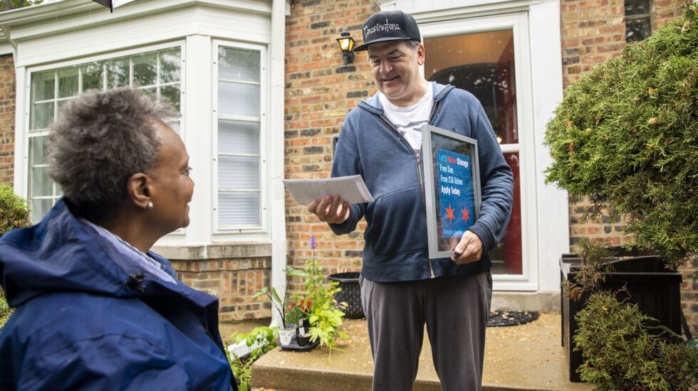 In fact, Lightfoot and Jennie Huang Bennett, the city’s chief financial officer, made a personal visit to the Northwest Side’s 39th Ward a few weeks ago to hand the first, $150 gas card to Bullion, director of a local theater company, according to a mayoral press release sent out Wednesday.