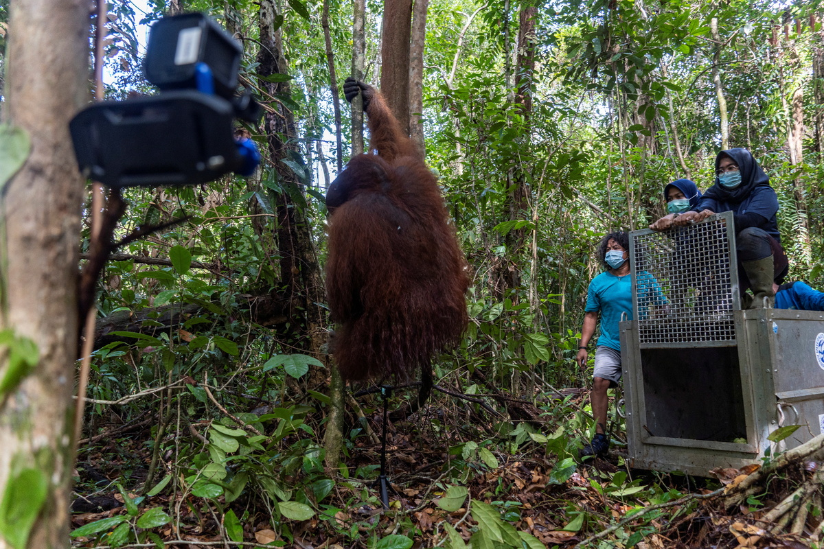 They monitored the ape, whom they estimated to be about 15 years old, for a month before transporting him to the Tanagupa conservation forest in the Gunung Palung National Park, in west Kalimantan.