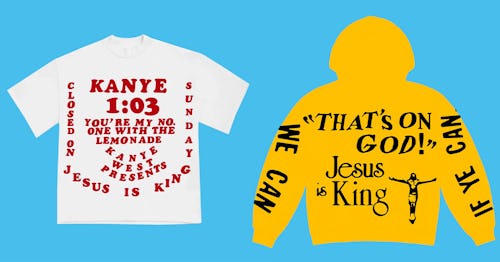 Kanye tapped CPFM for his next two projects, which are now some of the most coveted and marked-up music merch ever made. At his Coachella Sunday Service performance in 2019, Kanye’s “Church Clothes” tent sold the flaming “Holy Spirit” and “Trust God” sweatsuits that practically became Keeping Up With the Kardashians cast members. The Yeezy blanks sold for $200, and currently resell for up to $1,100. Religion was more blatant in Jesus is King merch, with bubble-lettered lyrical references and Bible verses (including “Kanye 1:03”) in bright colors.