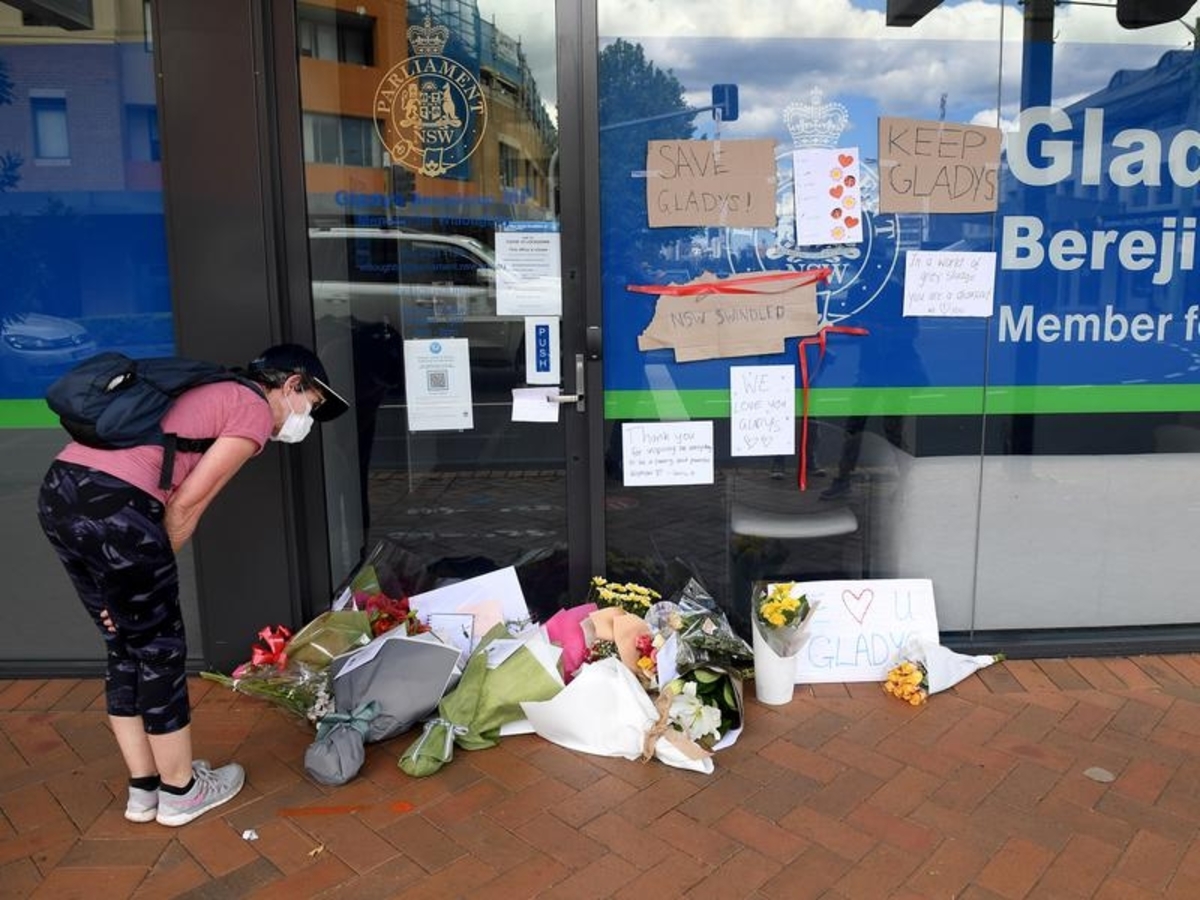 Meanwhile supportive constituents have gathered outside her home with flowers and balloons in her initials while others stood outside her office with handmade signs reading "We love Gladys" and "Long live Gladys".