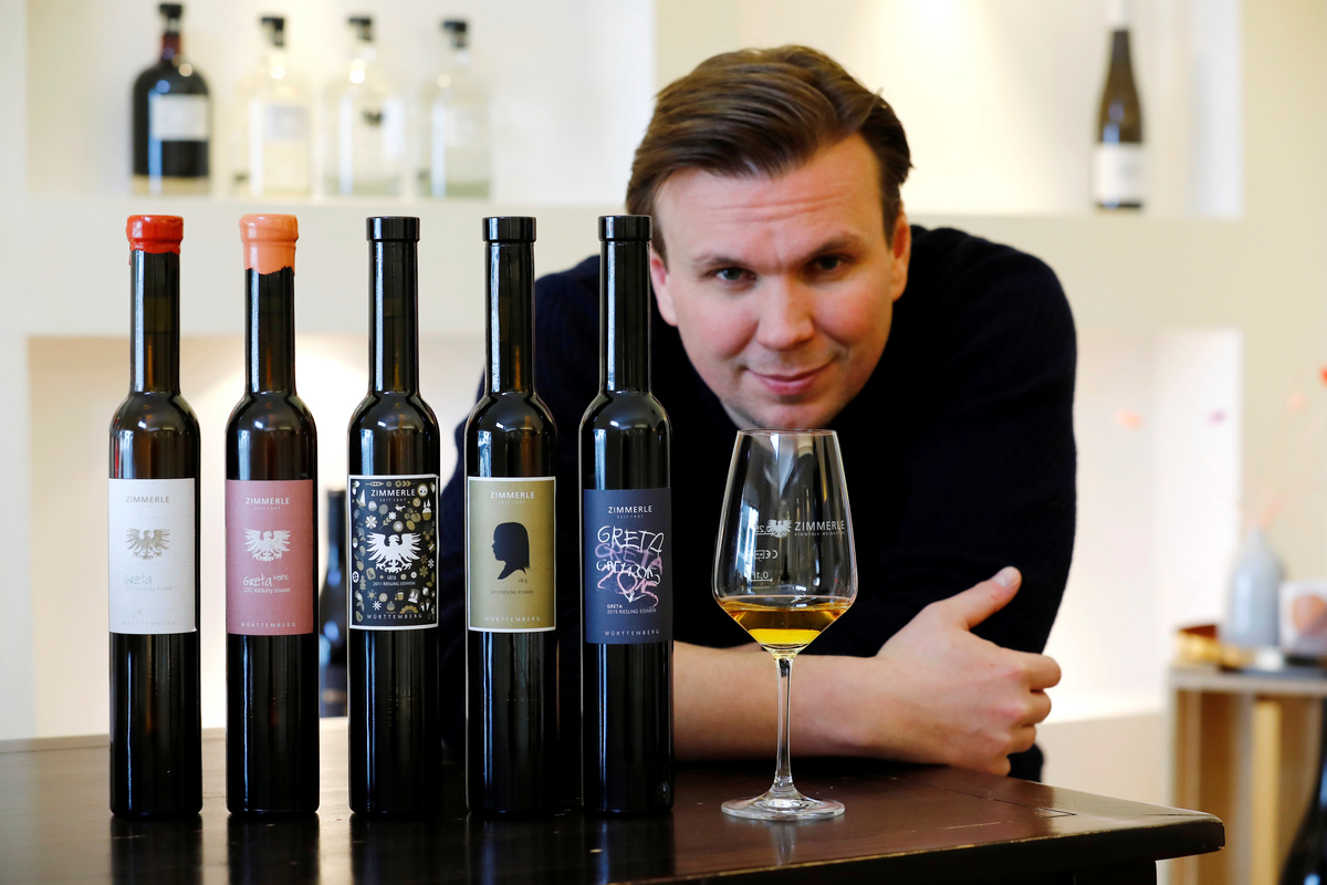 Weingut Zimmerle in Korb, near Stuttgart, harvested Riesling ice wine grapes at -8 degrees Celsius in January after they had frozen on the vine for several hours to produce around 100 liters of golden liquid with an intensely sweet taste.