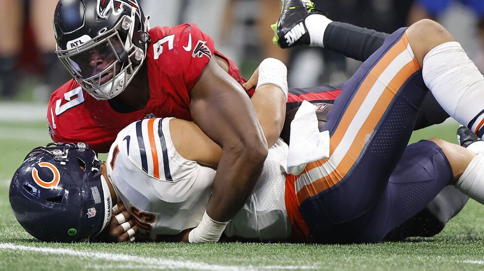 ATLANTA — Bears players were frustrated by what they thought were late hits on quarterback Justin Fields in Sunday’s 27-24 loss to the Falcons.