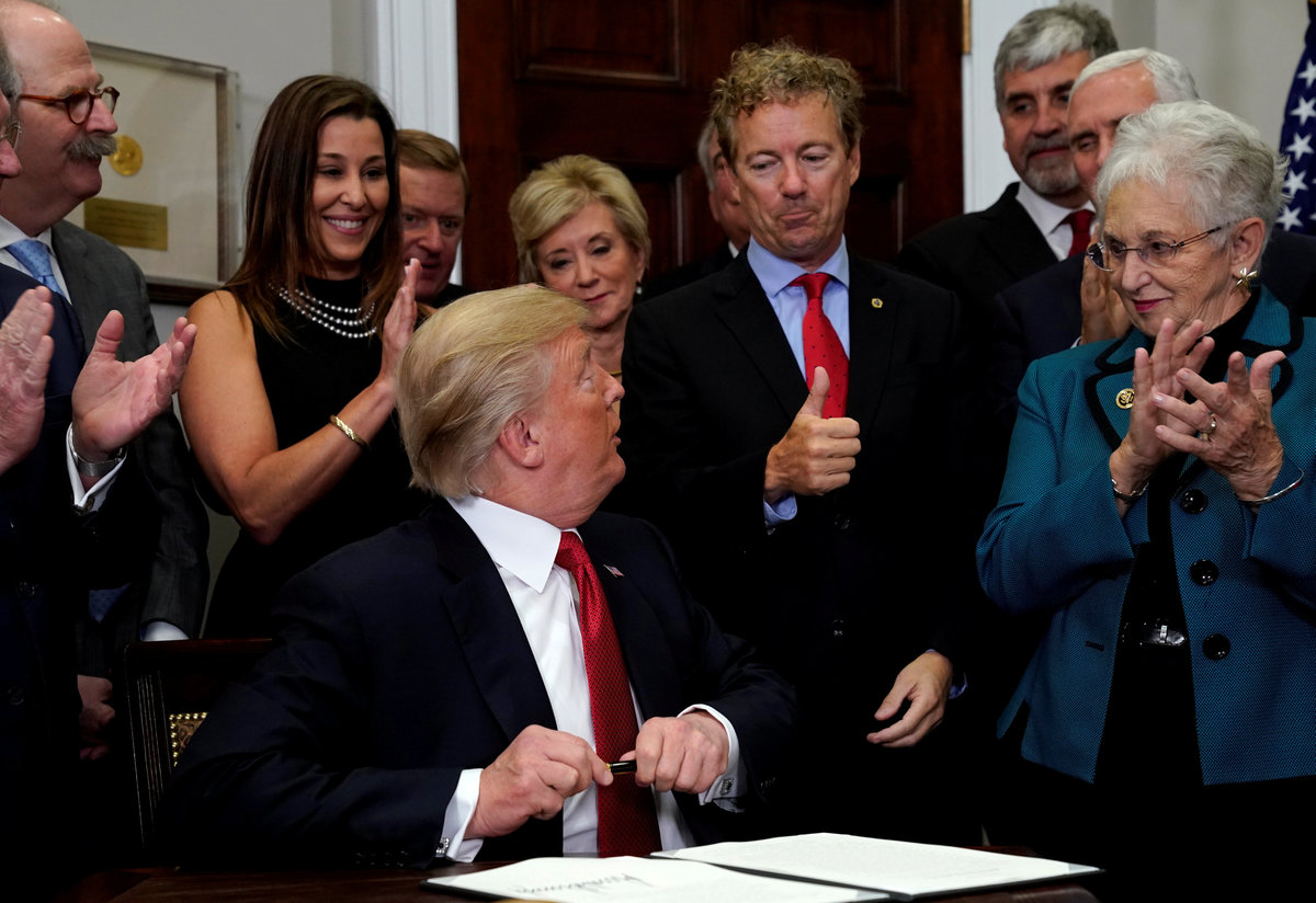"The cost of the Obamacare has been so outrageous, it is absolutely destroying everything in its wake," Trump said at a White House signing ceremony.