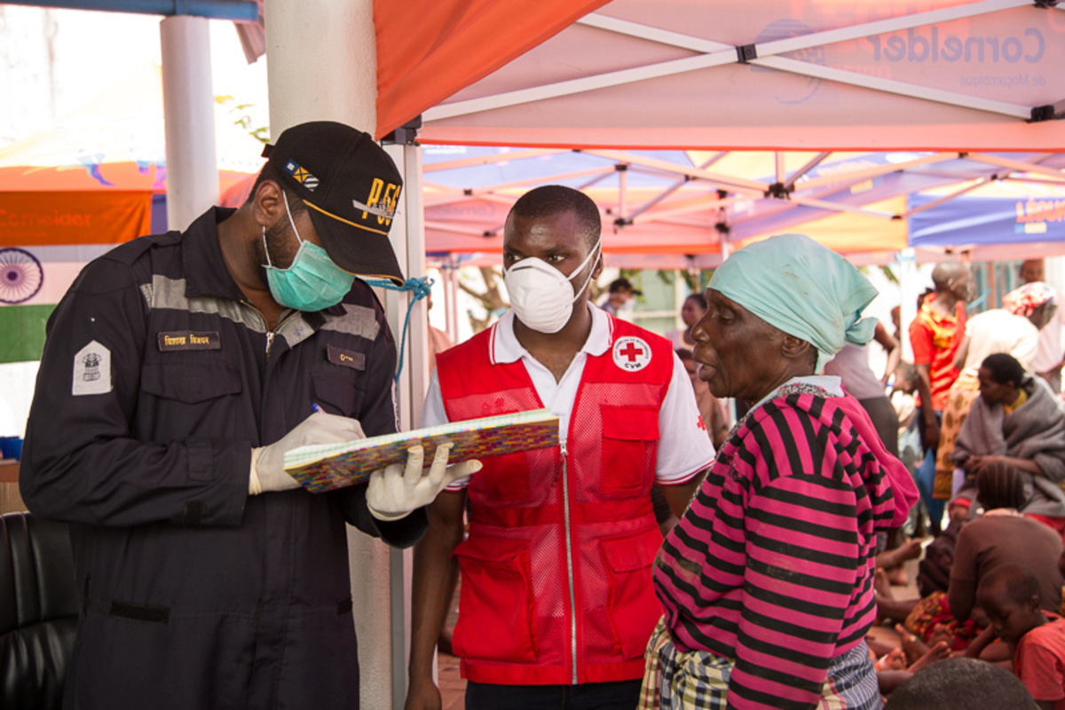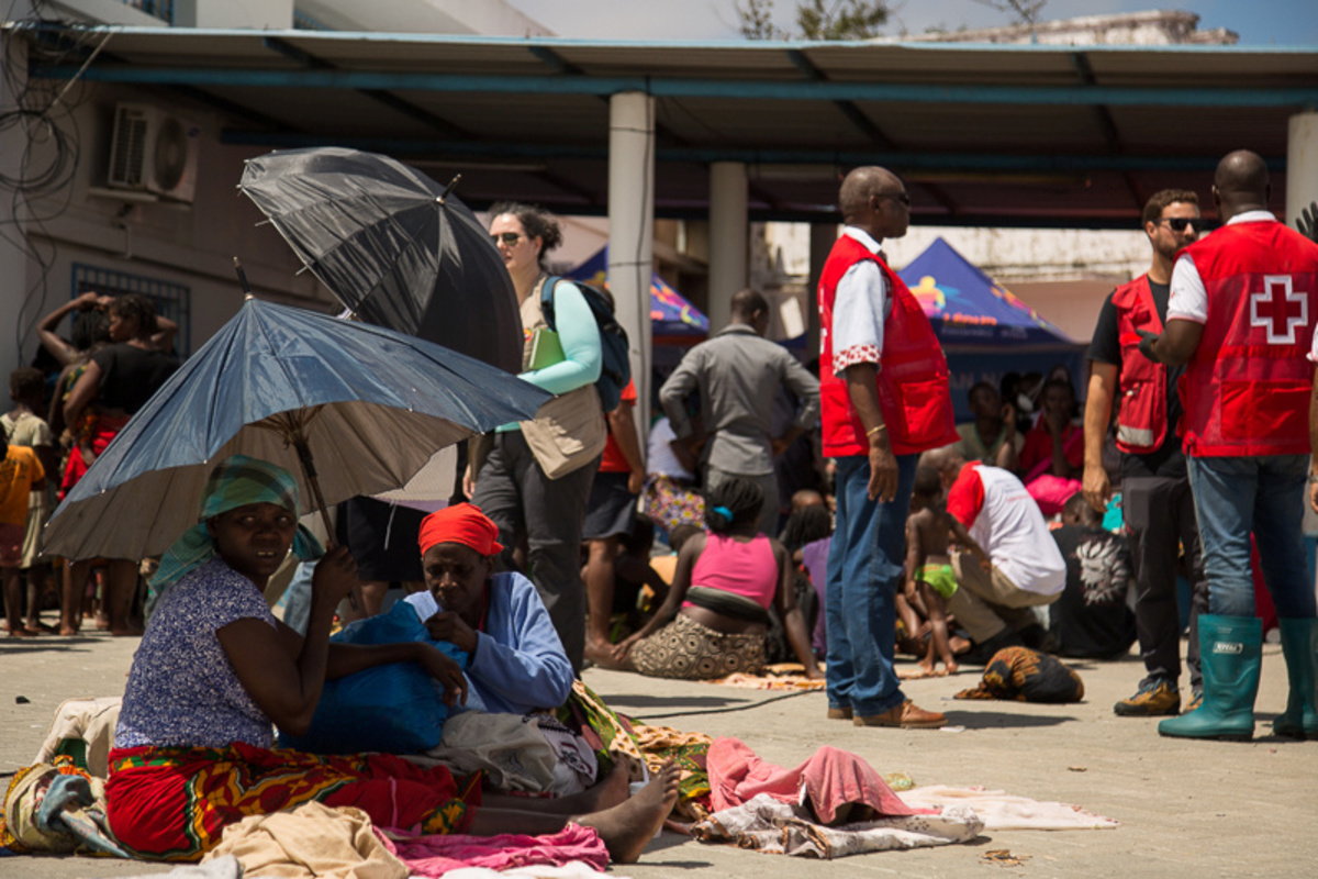 On a beach in Beira, where the Red Cross estimated 90 percent of the city was damaged or destroyed, survivors clutching infants and bags disembarked from rescue boats beside a ship marooned on the sand and began receiving Red Cross help.