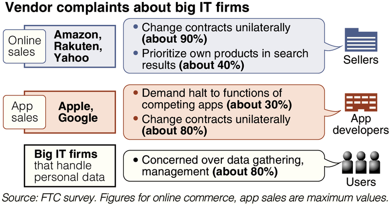 The survey, which began in January, mainly focused on the trade practices of Amazon.com Inc., Rakuten Inc. and Yahoo Japan Corp., which run online commerce sites, as well as Google LLC and Apple Inc., which run sites that sell apps.