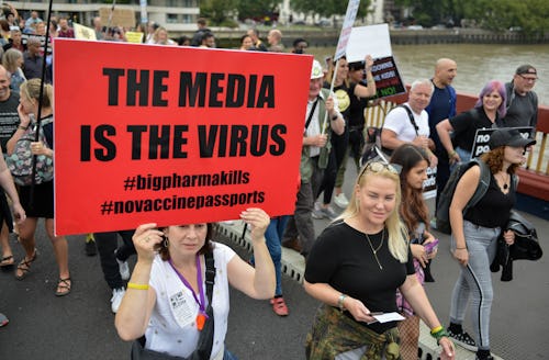 Much of the paranoia and medical distrust can be linked directly to prominent anti-vax influencers on messaging apps like Telegram, who detail steps for individuals to demand loved ones and family members be moved from ICU to hospice care, as well as dosage instructions for ivermectin, the horse dewormer many (Joe Rogan included) have promoted as an alternative treatment for COVID-19. Other “protocols” anti-vaxxers suggest range from patently false to downright dangerous, like gargling iodine as well as nebulizing and inhaling hydrogen peroxide.