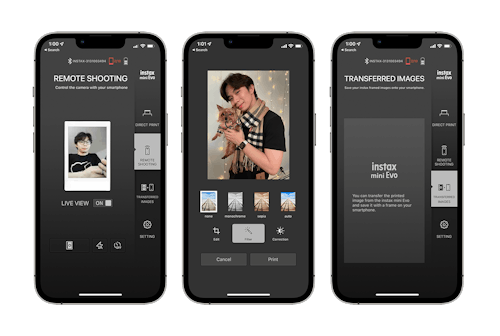 The Instax Mini Evo doubles as an SP-2 printer when connected to a smartphone over Bluetooth. From the Instax Mini Evo app (available for iOS or Android), you can get print photos from your camera roll as is or edit them with picture adjustments or filters first. The image adjustments are limited and you can't add special frames or doodles or timestamps to your pictures like you can with the Instax SP-2. But I'm cool without the gimmicks. The app is a major improvement in terms of interface design and reliability compared to the Instax Share app for the SP-2 printer.