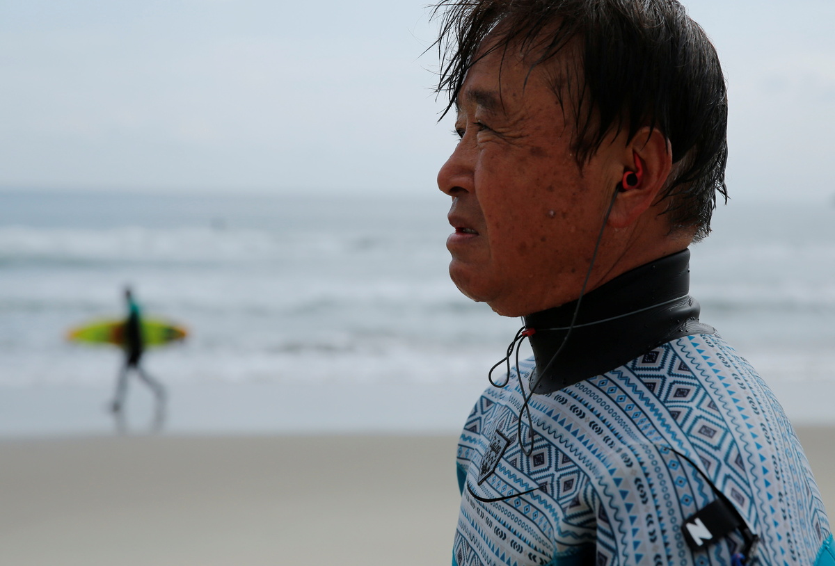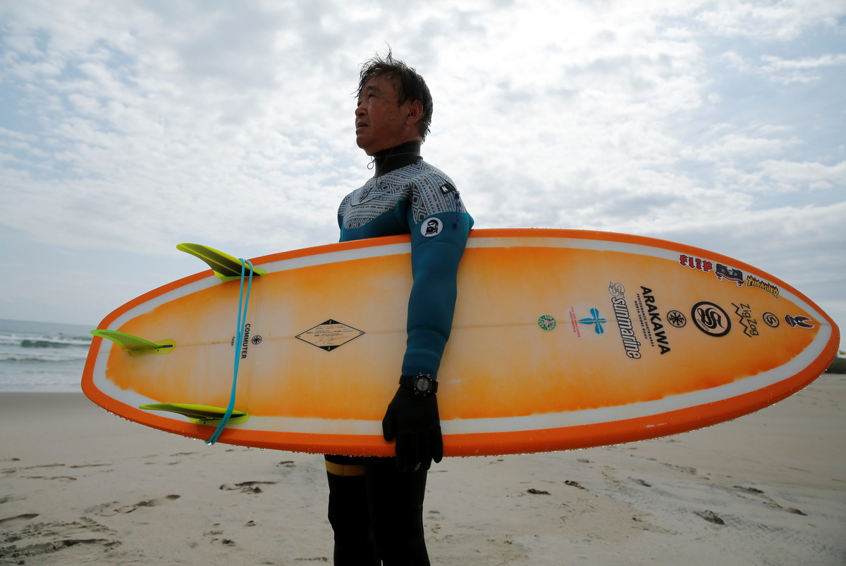 The 66-year-old reopened Sun Marine Surf in November of the following year in a new location in Minamisoma city, a few kilometres from the coast, and he visits the beaches of Fukushima Prefecture daily to surf.