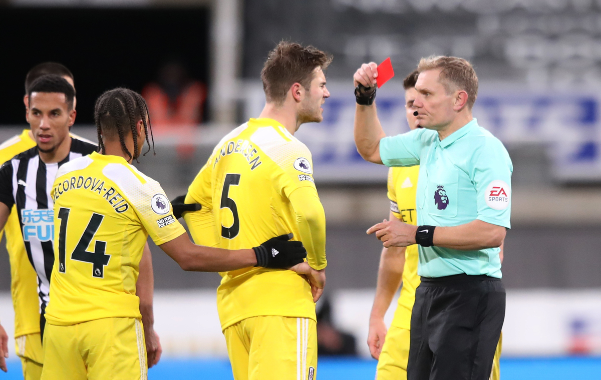 The 24-year-old Dane was sent off after he was adjudged to have fouled Newcastle striker Callum Wilson in the penalty area.