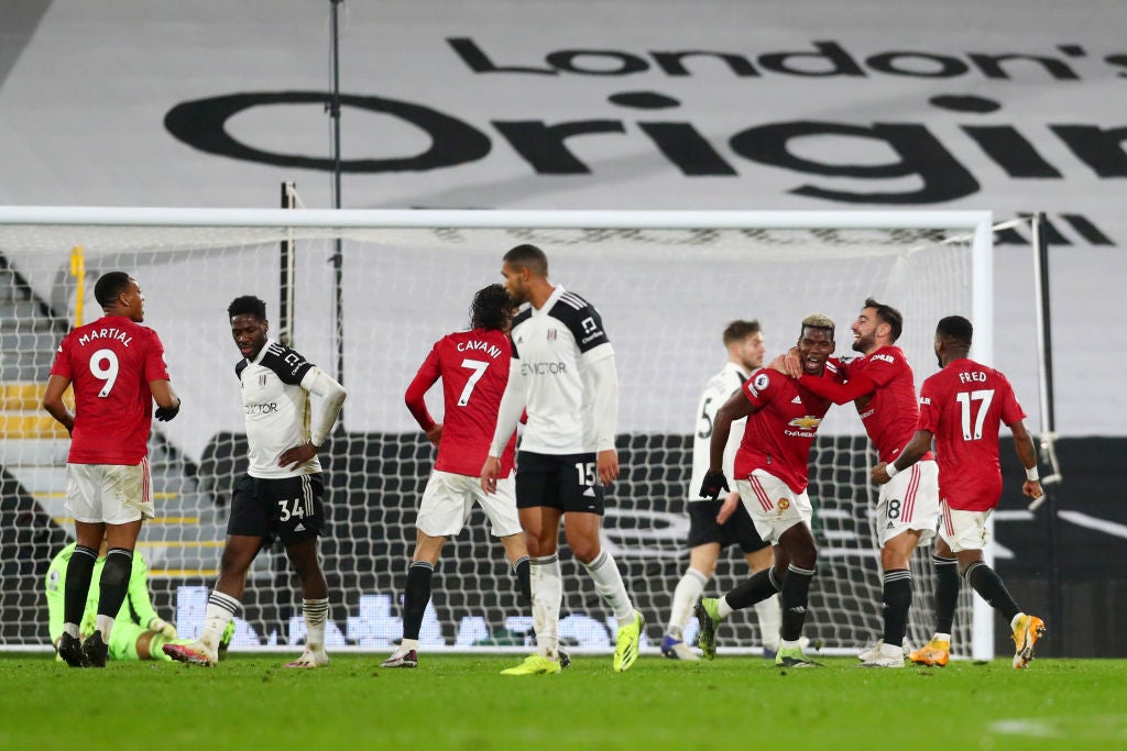Fulham created openings on the counter but Paul Pogba smashed in an unstoppable second, with Cavani going close afterwards with a header and Ruben Loftus-Cheek shooting straight at David de Gea when played through.