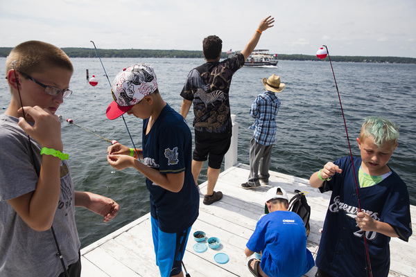 WILLIAMS BAY, Wis. _ A boy wiggles a worm onto a hook. Hoisting a fish into the air, he clamors for the camp counselor's attention.
