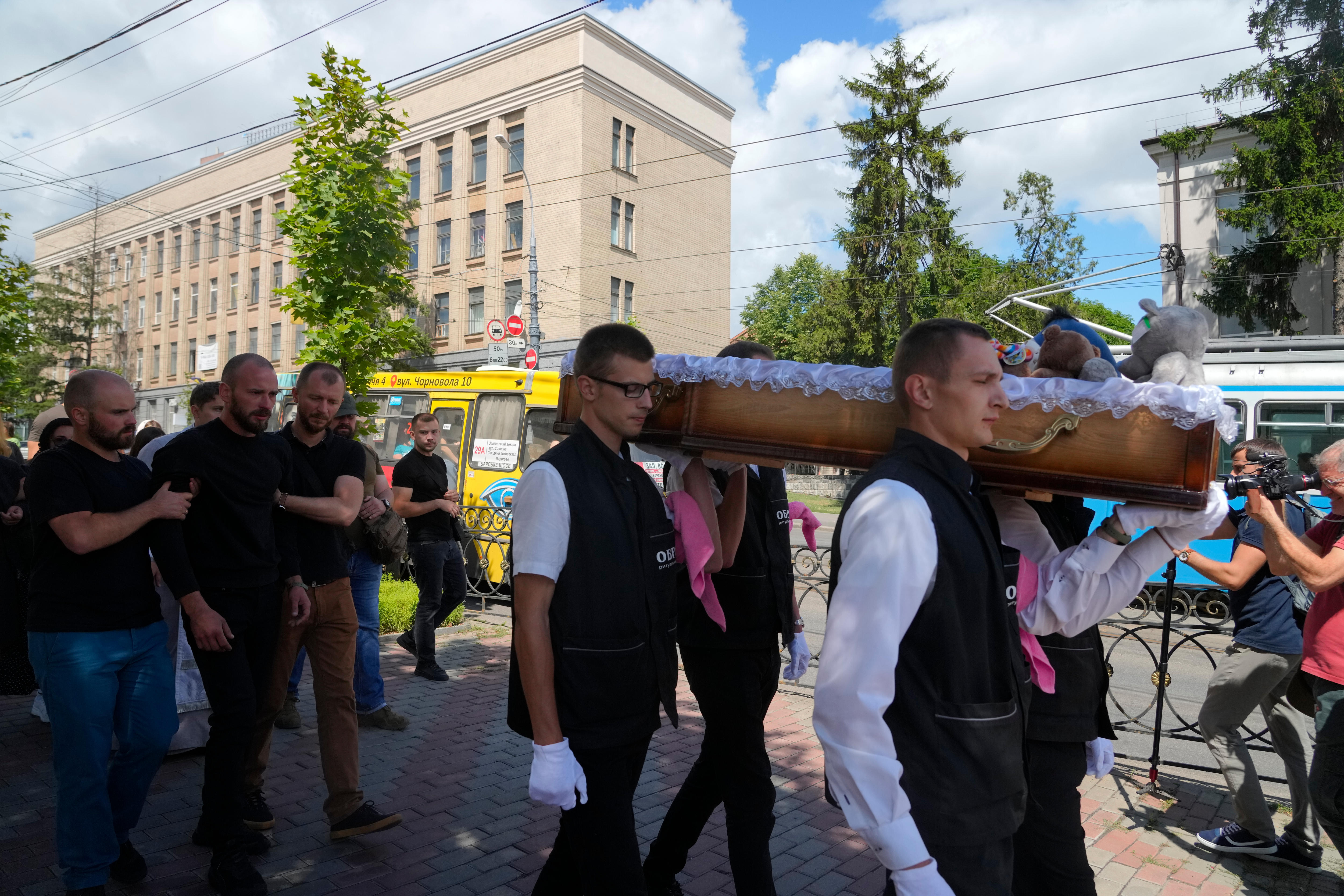 A 7-year-old boy killed in the same Russian air strike was also buried on Sunday, along with his mother in a village near Vinnytsia.