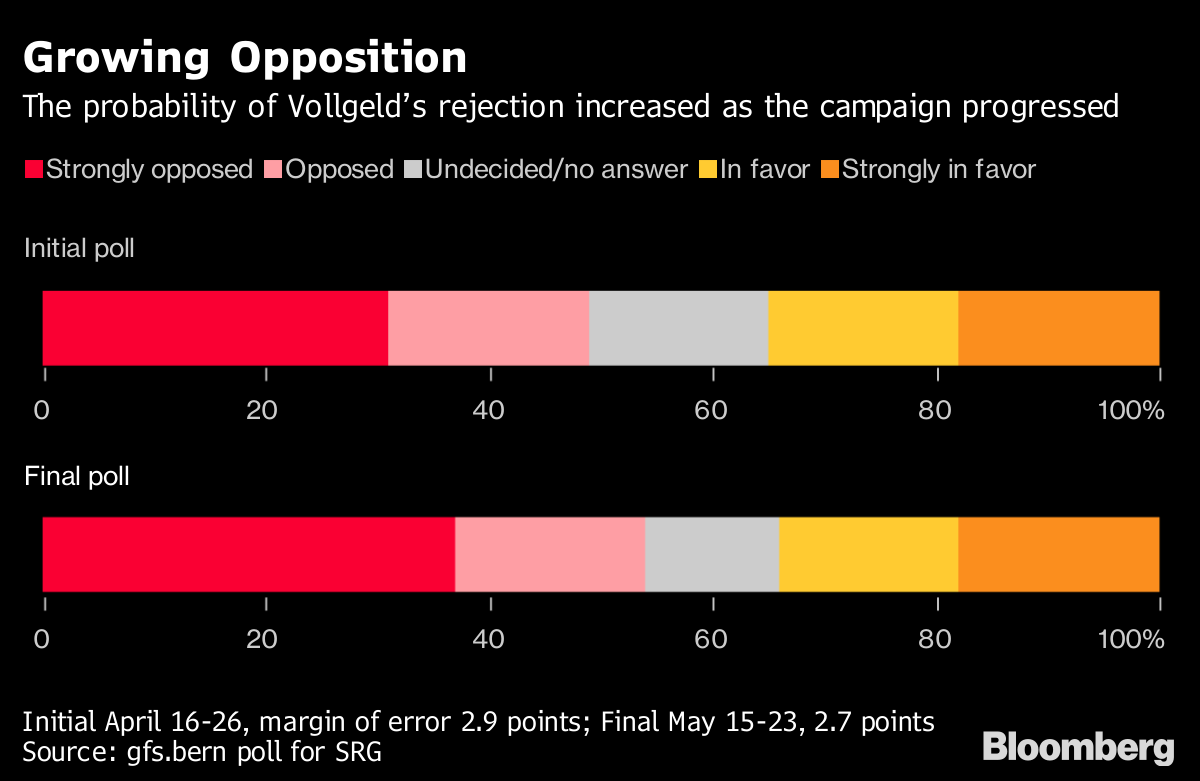 The “Vollgeld” proposal, opposed by the government and the Swiss National Bank, is unlikely to pass, according to polls. But its very existence shows how -- even after global regulators piled multiple tougher restrictions on banks -- there’s lingering resentment and lack of trust in the financial industry.