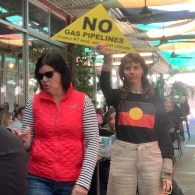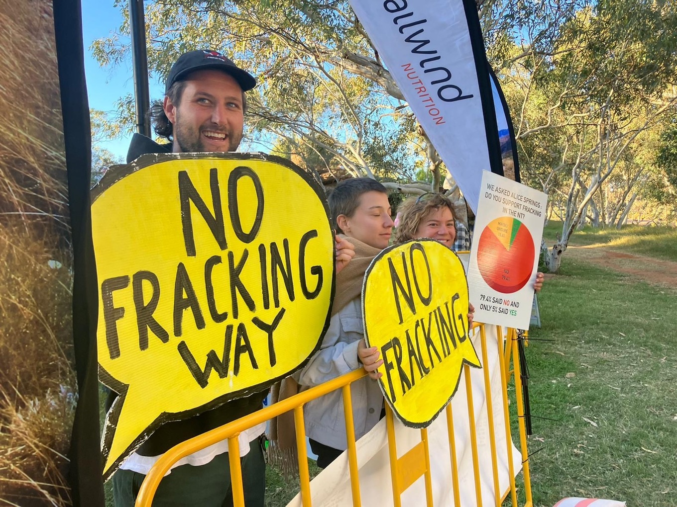 The protest was organised by the Central Australian Frack Free Alliance, which opposes the NT government's green-lighting of a full-scale onshore gas industry in the Beetaloo Basin.