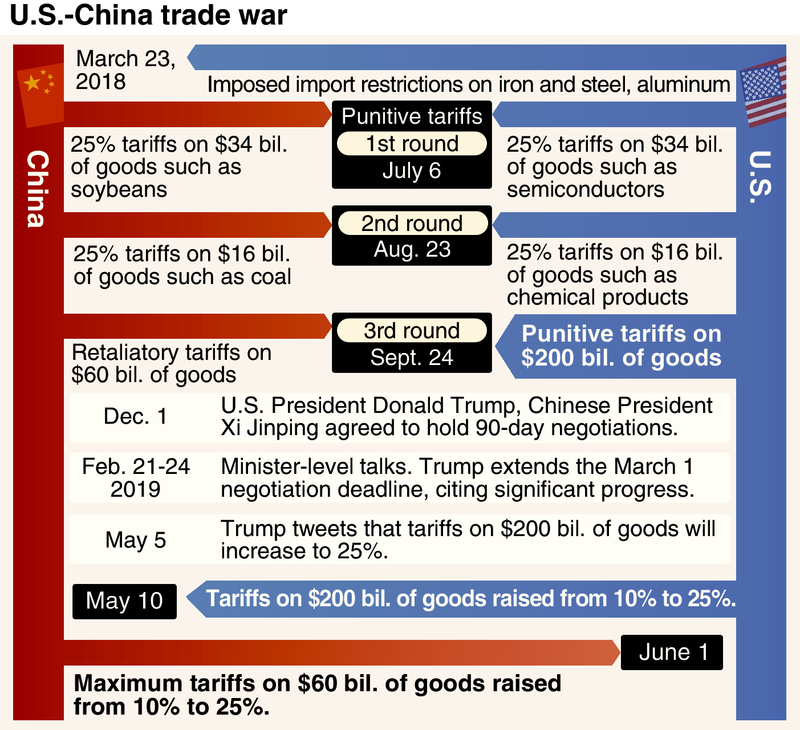 Trump will likely decide whether to impose a fourth round of punitive tariffs on Chinese products based on the outcome of his meeting with Xi in Osaka. The fourth round of tariffs will target an additional about 300 billion dollars (about 33 trillion yen) of Chinese goods, including smartphones, toys and clothes. If the tariffs are imposed, the United States will have tariffs in place on almost all Chinese imports, and the world economy would inevitably be affected.