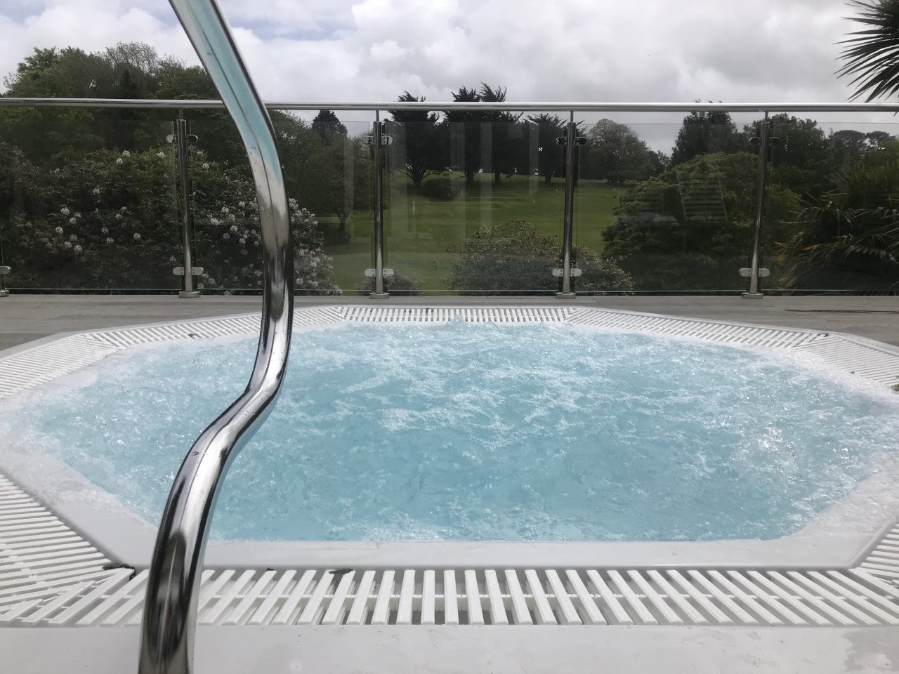 We ditch the car after the long drive and settle into the new outdoor hot tub before tucking into a champagne cream tea on the terrace. The southern aspect makes this spot a sun trap, with loungers dotting the sloping lawns.