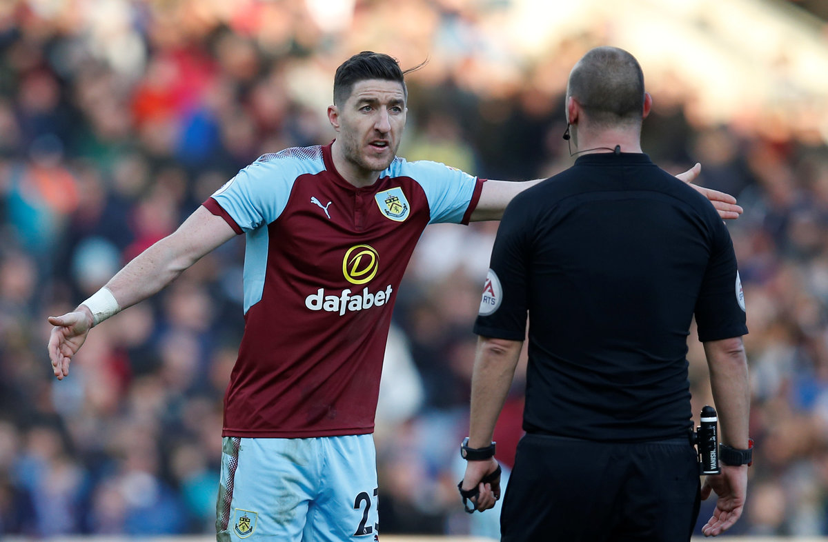 Soccer Football - Premier League - Burnley vs Southampton - Turf Moor, Burnley, Britain - February 24, 2018 Burnley's Stephen Ward appeals to referee Robert Madley REUTERS/Andrew Yates