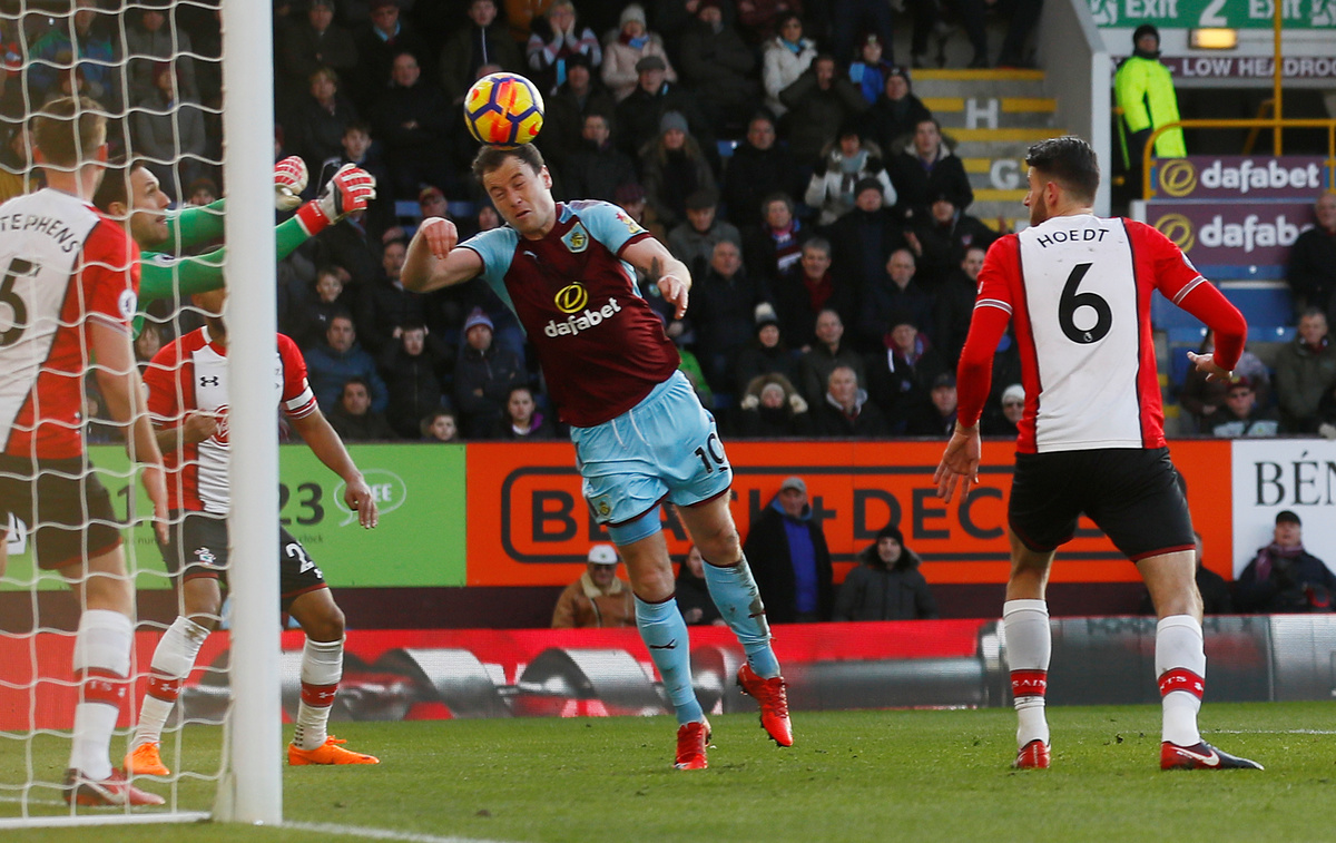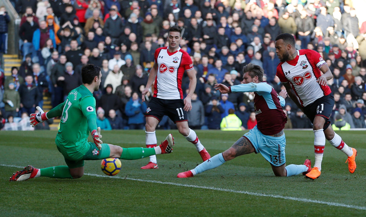 Soccer Football - Premier League - Burnley vs Southampton - Turf Moor, Burnley, Britain - February 24, 2018 Burnley's Ashley Barnes scores their first goal Action Images via Reuters/Jason Cairnduff Soccer Football - Premier League - Burnley vs Southampton - Turf Moor, Burnley, Britain - February 24, 2018 Southampton's Guido Carrillo in action with Burnley's Matthew Lowton REUTERS/Andrew Yates Soccer Football - Premier League - Burnley vs Southampton - Turf Moor, Burnley, Britain - February 24, 2018 Burnley's Jeff Hendrick in action with Southampton's Ryan Bertrand and Alex McCarthy REUTERS/Andrew Yates Soccer Football - Premier League - Burnley vs Southampton - Turf Moor, Burnley, Britain - February 24, 2018 Burnley's Ashley Barnes in action with Southampton's Guido Carrillo and Wesley Hoedt REUTERS/Andrew Yates