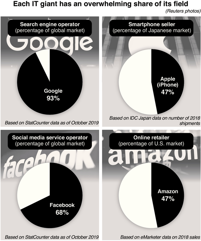 Giant technology companies such as Google LLC, Apple Inc., Facebook Inc., and Amazon.com Inc., which are collectively known as GAFA, expand their opportunities for online shops and app businesses on a global-scale through their own platforms, holding a huge market share and a large number of users. They cannot be avoided when doing business online. One app developer described them as "godlike beings."