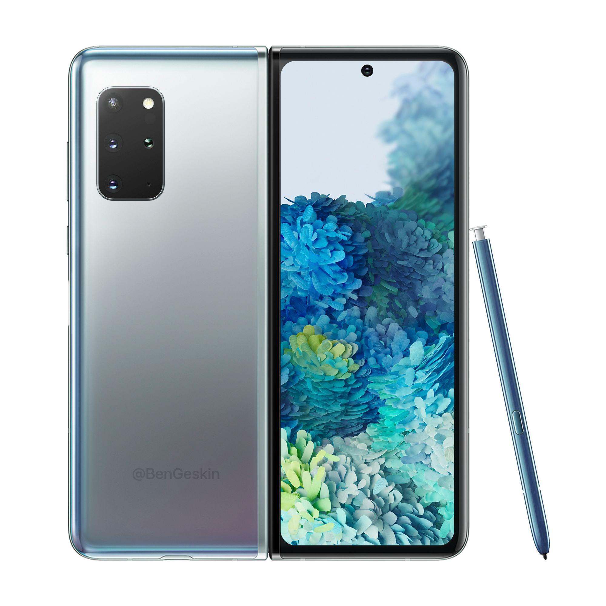 The inside display — the one that folds — is expected to be larger, too. 7.59 inches (diagonally) with 120Hz and 2,213 x 1,689 resolution. No word on whether the screen is plastic or bendable glass like the Galaxy Z Flip. It, too, is supposed to have a hole punch in the screen. We're just hoping it's more durable this time around — you know, so you don't need to baby it with gloves because your fingernail might damage it.