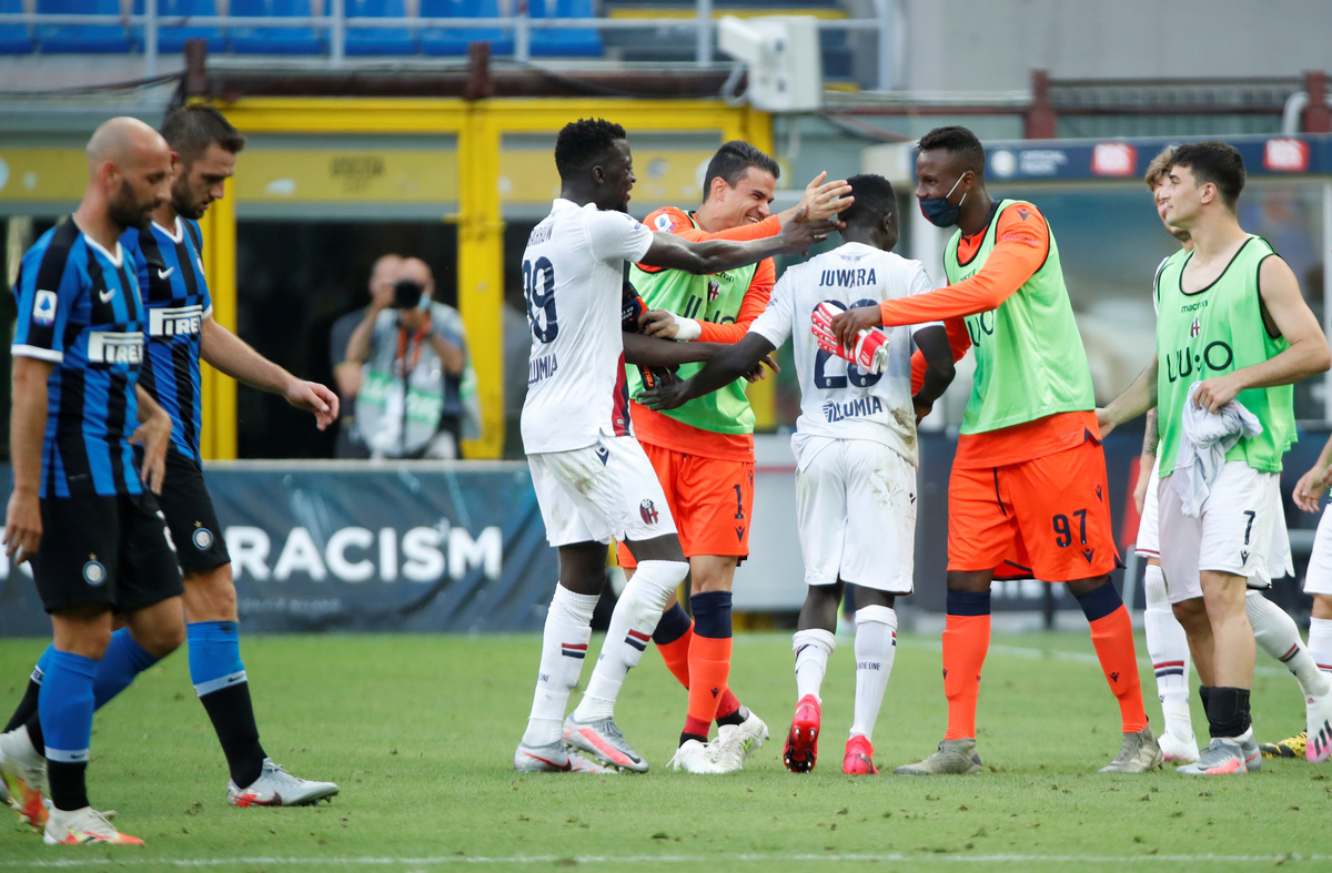 Inter defender Alessandro Bastoni was sent off for a second bookable offence three minutes later before Bologna's Nicolas Dominguez released Barrow who slotted a neat finish past goalkeeper Samir Handanovic with 10 minutes left.
