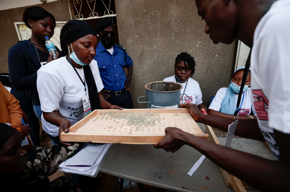 Gambia uses a unique voting system - marbles dropped into each candidate's ballot drum - to avoid spoilt ballots in a nation with a high illiteracy rate.