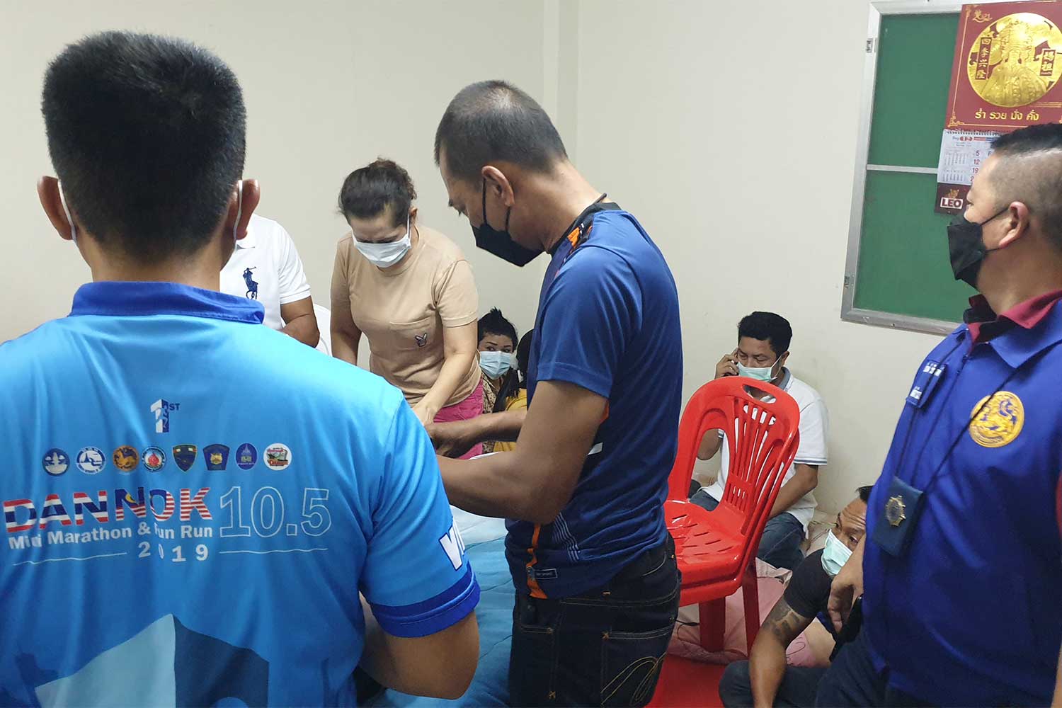 The found 16 people gambling at cards in a room on the second floor of the house. The five men and 11 women were arrested and 15 decks of cards and 14,400 baht in cash seized as evidence.
