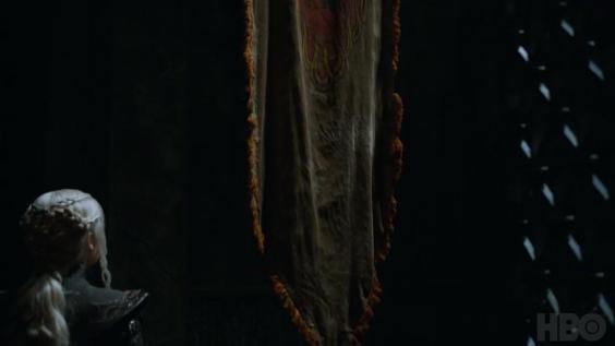 Daenerys claiming Dragonstone, ripping down an old Stannis Baratheon banner in the castle.
