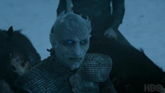 Bran warging as a raven and flying over an army of white walkers. The Night King appears to sense the bird, suggesting some sort of cerebral connection between Bran and the wight leader.