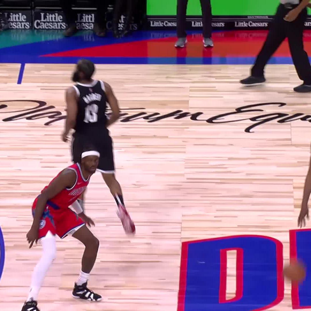 James Harden is blocked by Isaiah Stewart and needs a minute to get up. He looks okay. – 7:50 PM