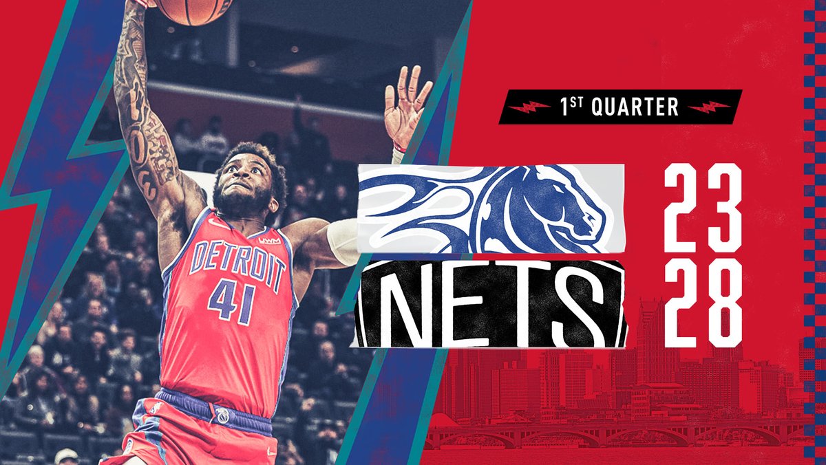 End of the first quarter: Nets lead the Pistons 28-23. Very balanced scoring early. Four Nets with five points. DeAndre’ Bembry has looked good and the Nets have 10 assists on 10 field goals. – 7:38 PM