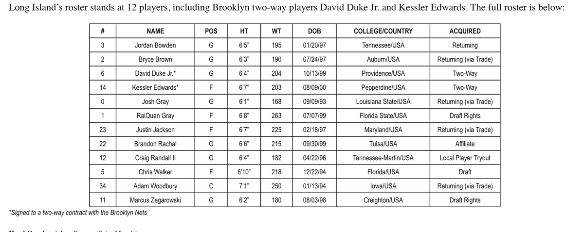 The @LongIslandNets roster includes Marcus Zegarowski (Creighton), David Duke (Providence), Justin Jackson (Maryland), Bryce Brown (Auburn) and Kessler Edwards (Pepperdine) pic.twitter.com/KT6HbiFNwg – 4:50 PM