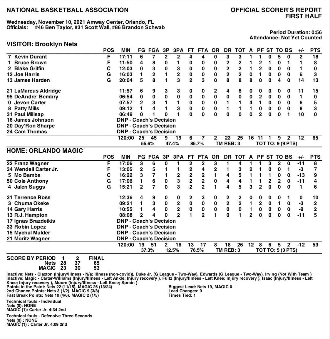 HALFTIME: Back to our regularly scheduled programming. The Nets are a lot for the Magic to handle, and outside of a mini-run here and there, have mostly dominated the first half.