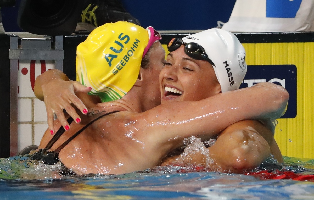 Masse clocked a Commonwealth Games record 58.63 seconds to pip Seebohm by 0.03 seconds in the lunge for the wall at the Gold Coast Aquatics centre. Canada's Taylor Ruck finished third.