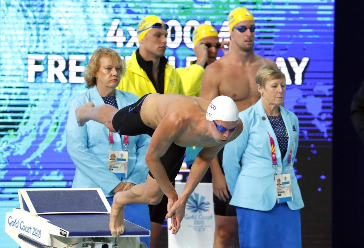 GOLD COAST, Australia (Reuters) - Scotland's Duncan Scott produced arguably the upset of the Commonwealth Games swimming programme so far on Sunday when he beat Olympic champion Kyle Chalmers with a late surge to win the men's 100m freestyle title.