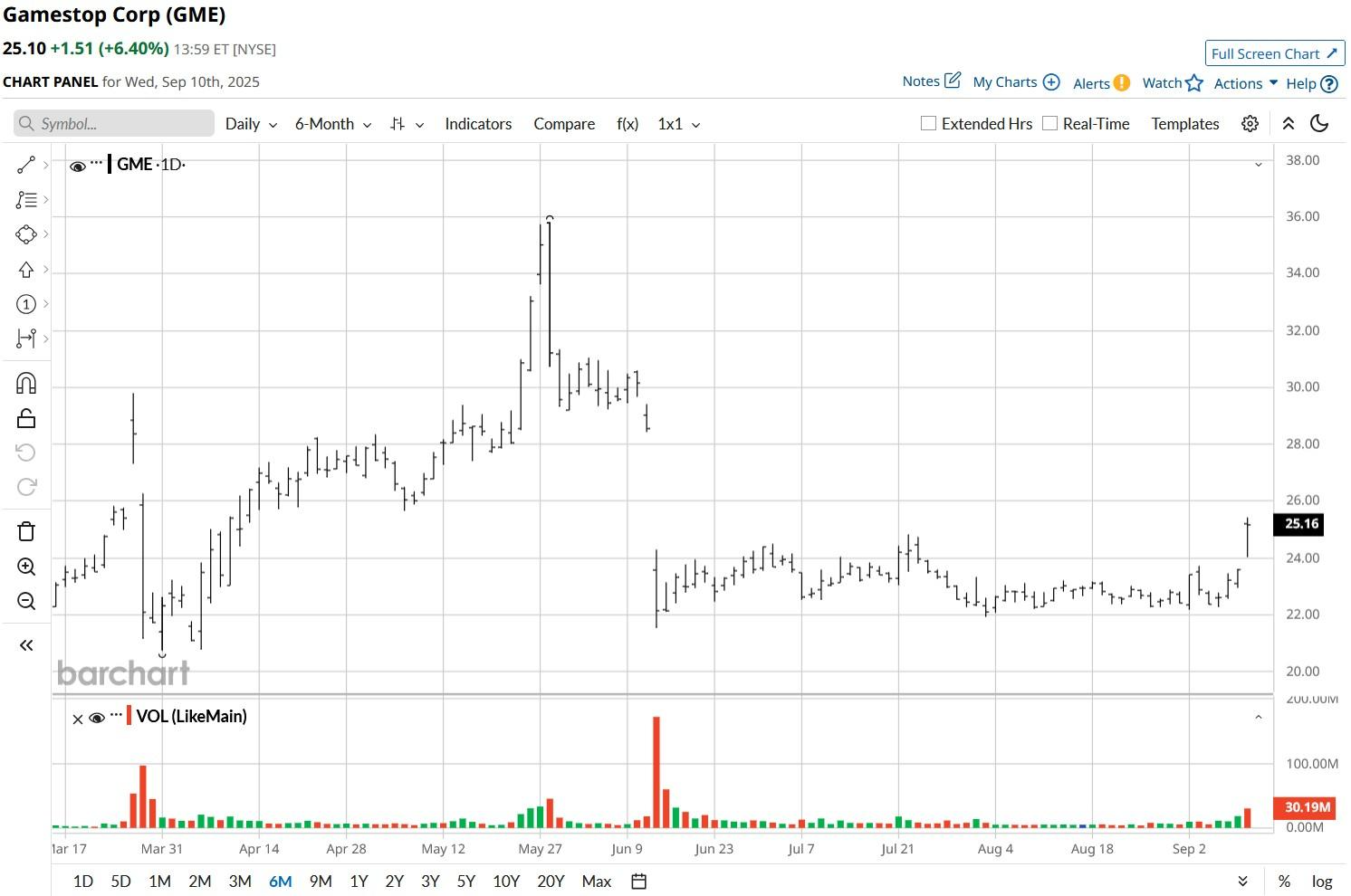 Despite today’s rally, GameStop stock is down well over 25% versus its year-to-date high set in May.