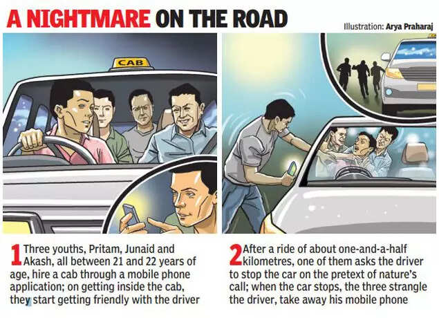 “The accused told us that cabbies were easy targets and they also usually had money on them,” said an officer. The investigators told TOI that the main man behind the murder, Pritam, a native of Bihar, is yet to be traced.