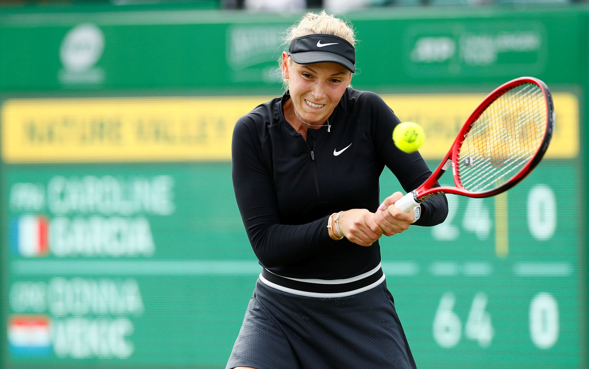 (Reuters) - France's Caroline Garcia recovered from a set down to beat Croatian Donna Vekic 2-6 7-6(4) 7-6(4) and win her first title of the season at the Nottingham Open grasscourt event on Sunday.