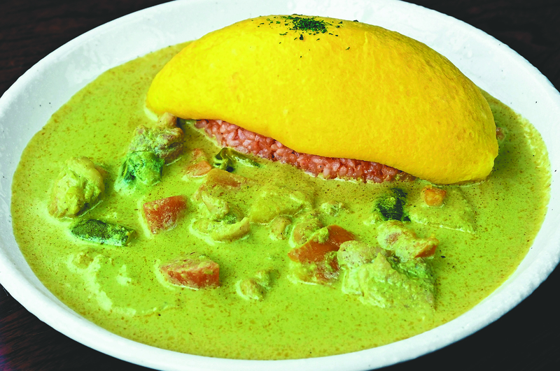 The curry soup, containing a lot of large chunks of fresh vegetables, has a creamy and gentle texture, while the rice omelet is extremely soft and thick.
