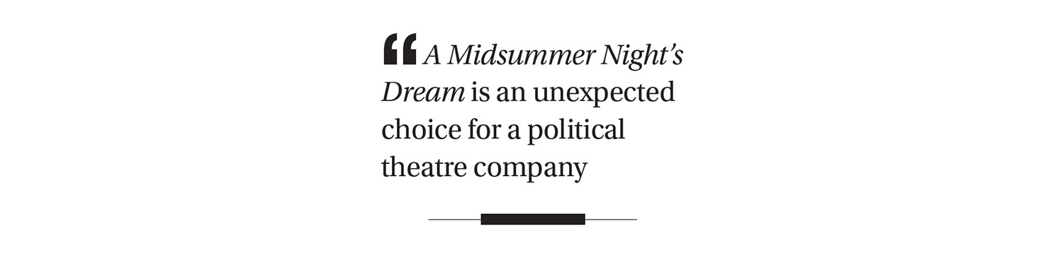A Midsummer Night's Dream has inspired countless artists to create productions that are in some way magical, beautiful and delightful. B-floor Theatre may be known for its political work and "magic" and "delight" may not be synonymous with the company, but it has always been known for the beauty of their production designs. A Midsummer Night's Dream is an unexpected choice for a political theatre company, but B-floor has always understood that no matter how small the budget or how disturbing the subject, theatre has to be emotional and art has to be a thing of beauty.